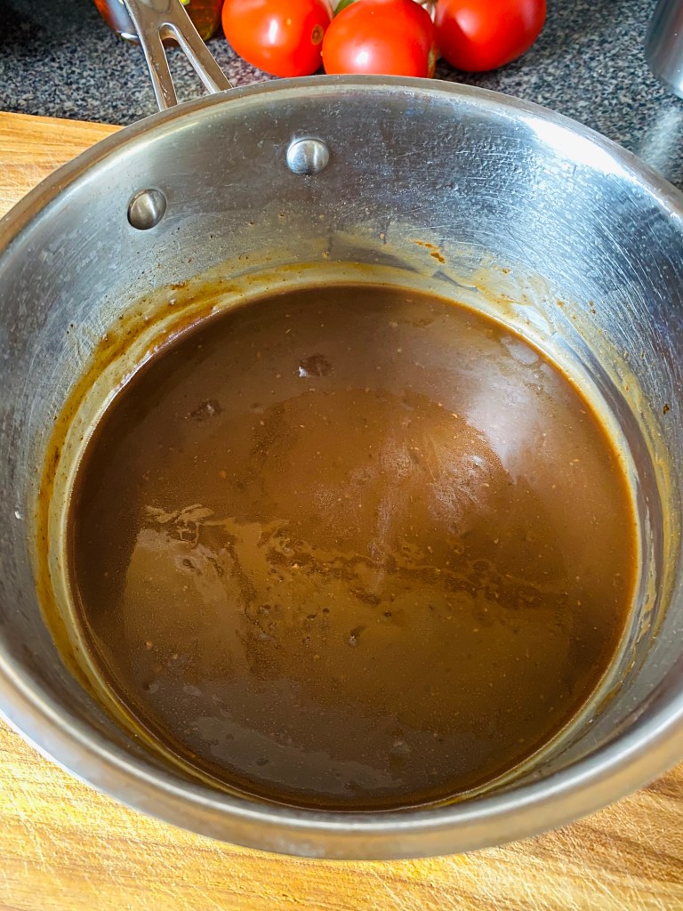 - Add butter to pan and melt. Once melted add flour and whisk until mixed well and flour smell has cooked off. Slowly add milk while whisking. Slowly add stock while whisking. Cook for roughly 10 minutes or until thick and bubbly.